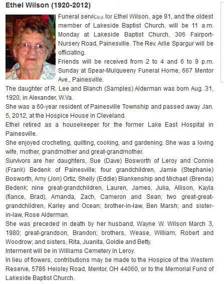 Ethel Wilson Obiturary, Ethel Wilson Obiturary (News-Herald 01/06/12)