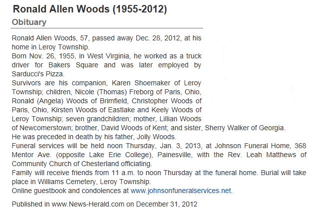 Woods, Ronald Obiturary, Woods, Ronald Obiturary (News-Herald 12/31/2012)