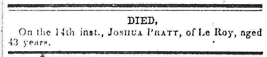 Pratt, Joshua Obiturary, Pratt, Joshua Obiturary (Telegraph 11/30/1853