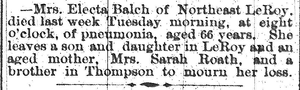 Balch, Electa Obituary, Balch, Electa Obituary (Telegraph 01/09/1887)