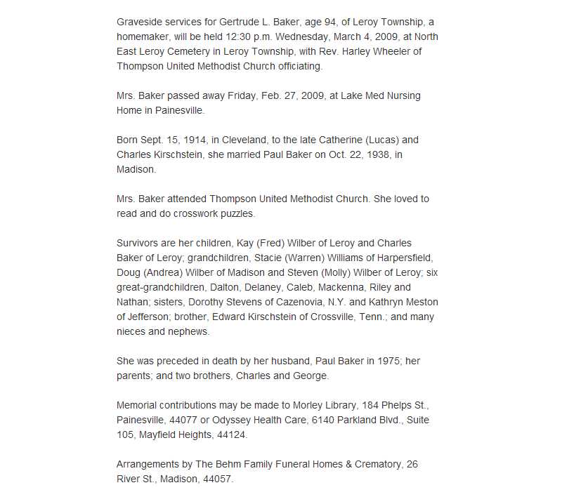 Baker, Getrude Obituary, Baker, Getrude Obituary (News-Herald 03/01/2009)