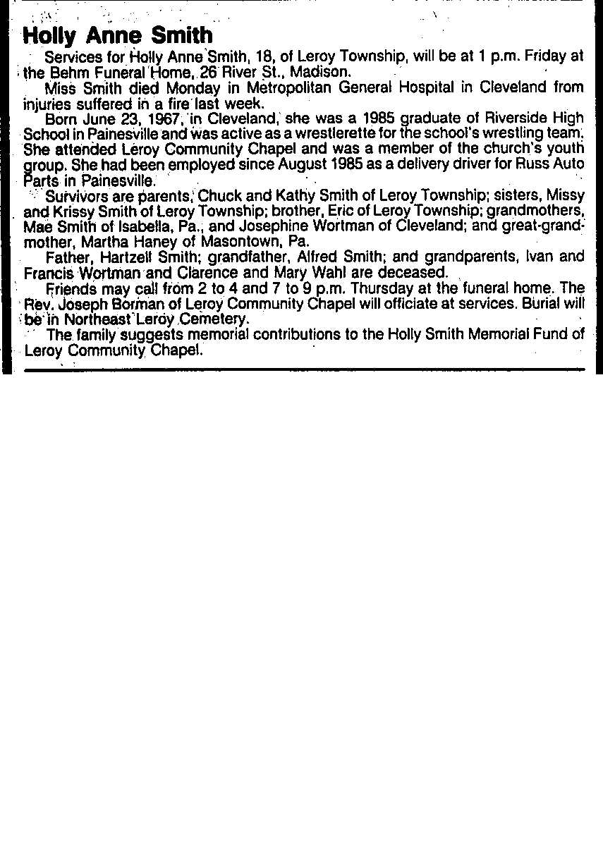 Smith, Holly Obituary, Smith, Holly Obituary (Telegraph 04/09/1986)