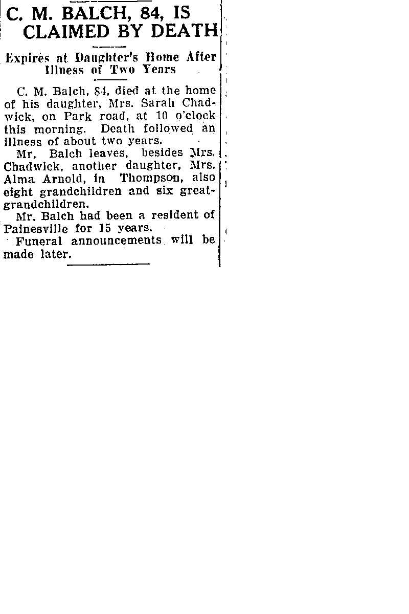 Balch, Charles M Obituary, Balch, Charles M Obituary (Telegraph 05/06/1930)