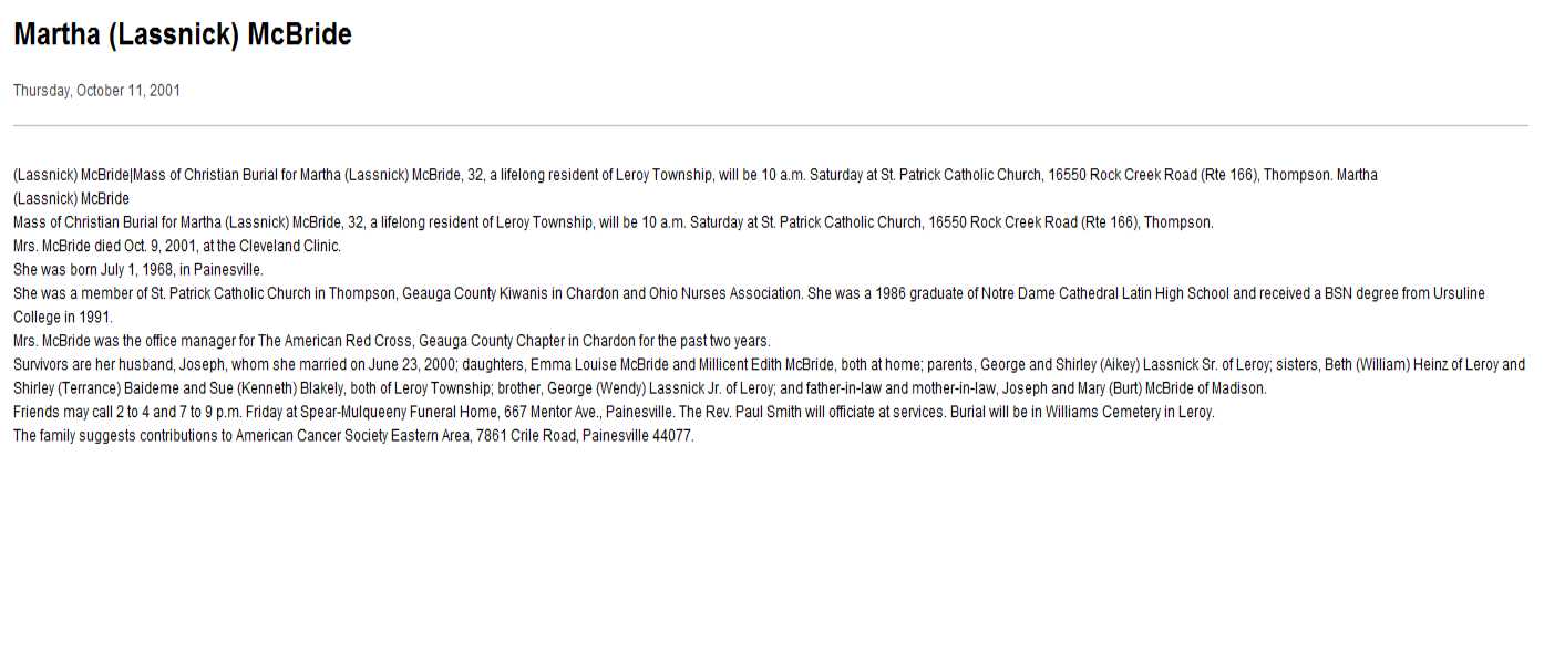 McBride, Martha Obiturary, McBride, Martha Obiturary (News-Herald 10/11/2001)