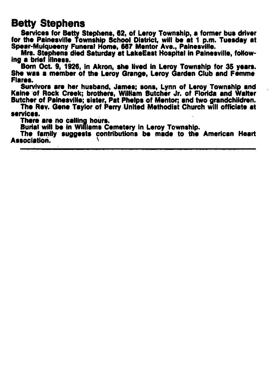 Stephens, Betty Obituary, Stephens, Betty Obituary (News-Herald 03/20/1989)