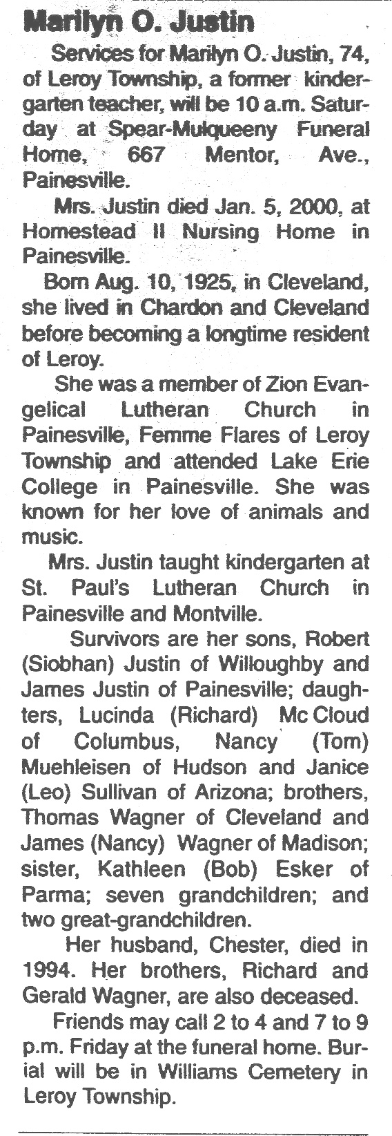Justin, Marilyn Obituary, Justin, Marilyn Obituary (News-Herald 01/06/2000)