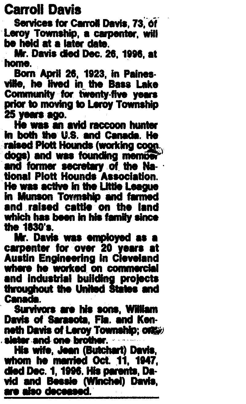 Davis, Carroll Obituary, Davis, Carroll Obituary (News-Herald 12/28/1996)
