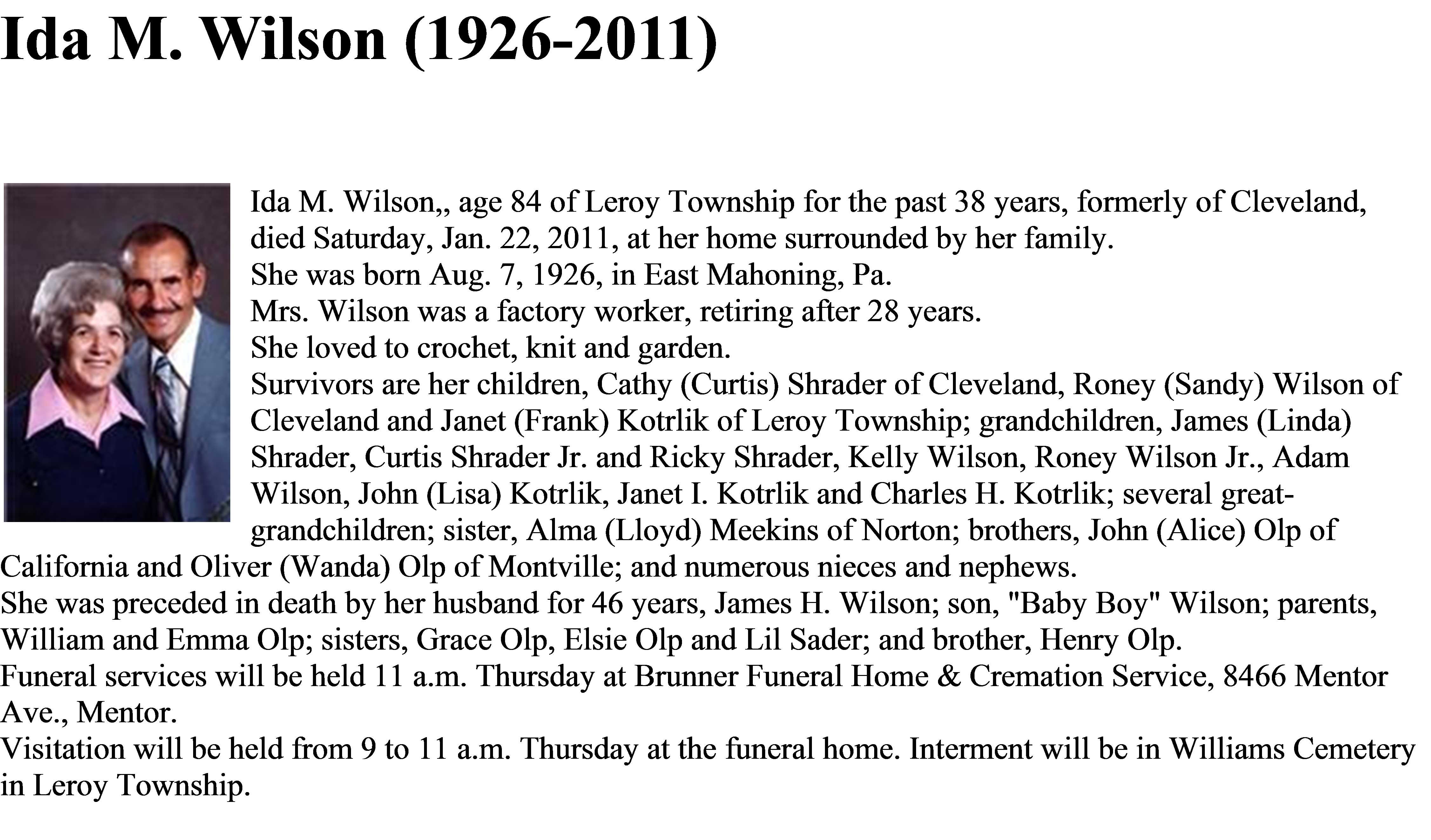 Wilson, Ida Obitiuray, Wilson, Ida Obitiuray (News Herald 01/25/11)