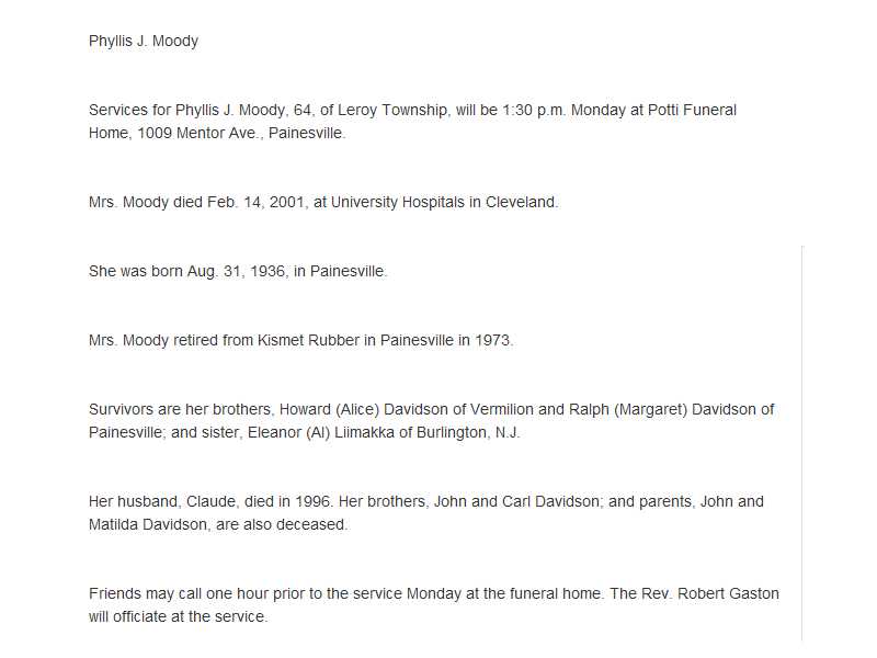 Moody, Phyllis Obituary, Moody, Phyllis Obituary (News-Herald 02/17/2001)