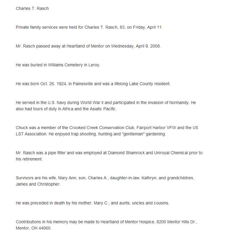 Rasch, Charles Obituary, Rasch, Charles Obituary (News-Herald 04/12/2008)