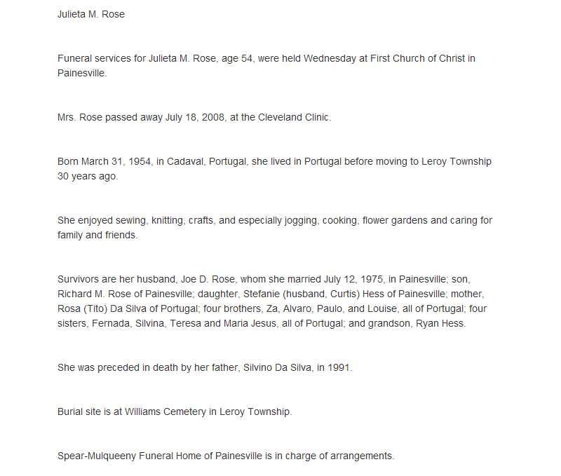 Rose, Julieta Obituary, Rose, Julieta Obituary (News-Herald 07/24/2008)