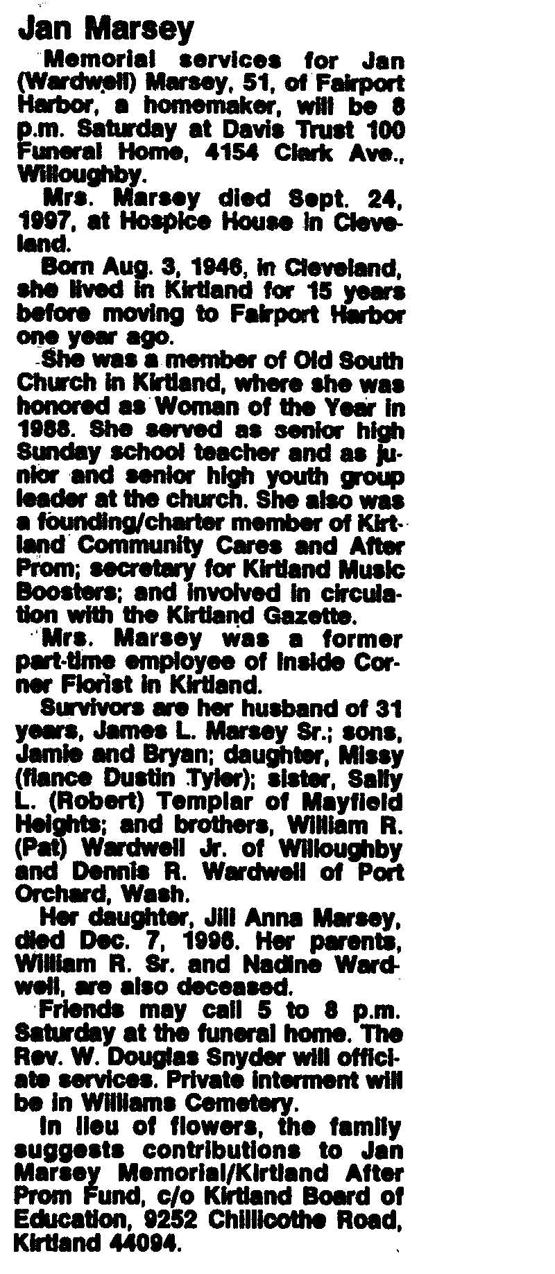 Marsey, Jane Obituary, Marsey, Jane Obituary (News-Herald 09/26/1997)