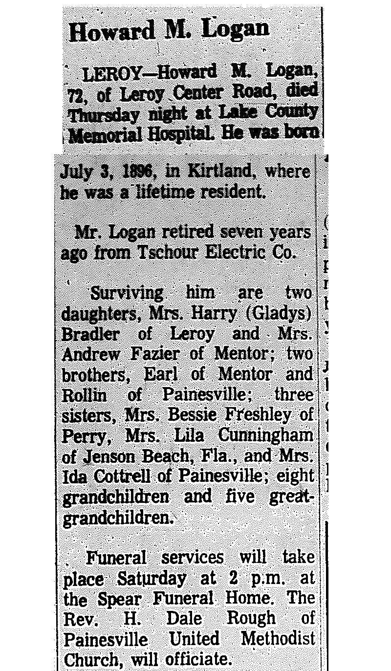 Logan, Howard Obituary, Logan, Howard Obituary (Telegraph 09/06/1968)