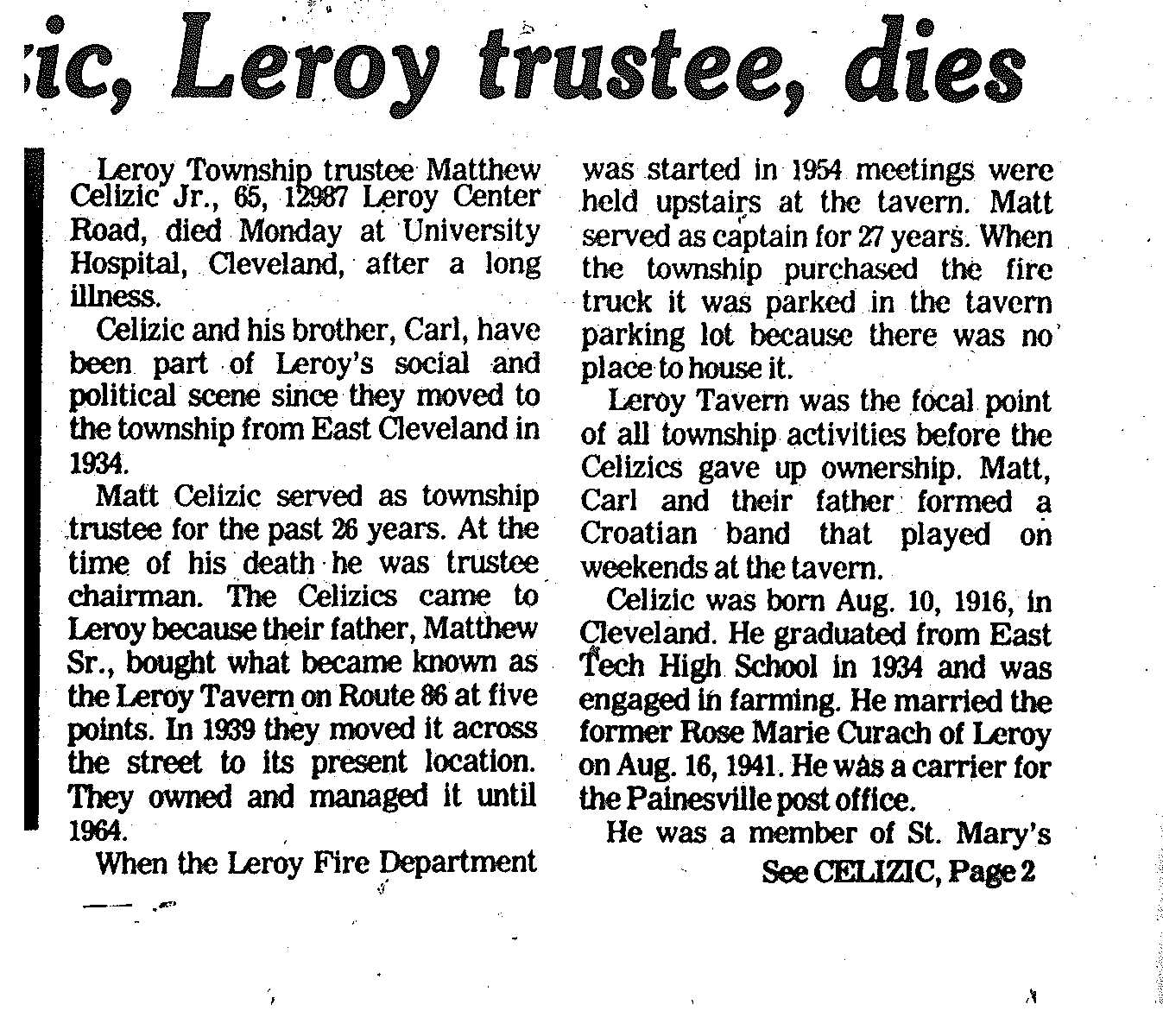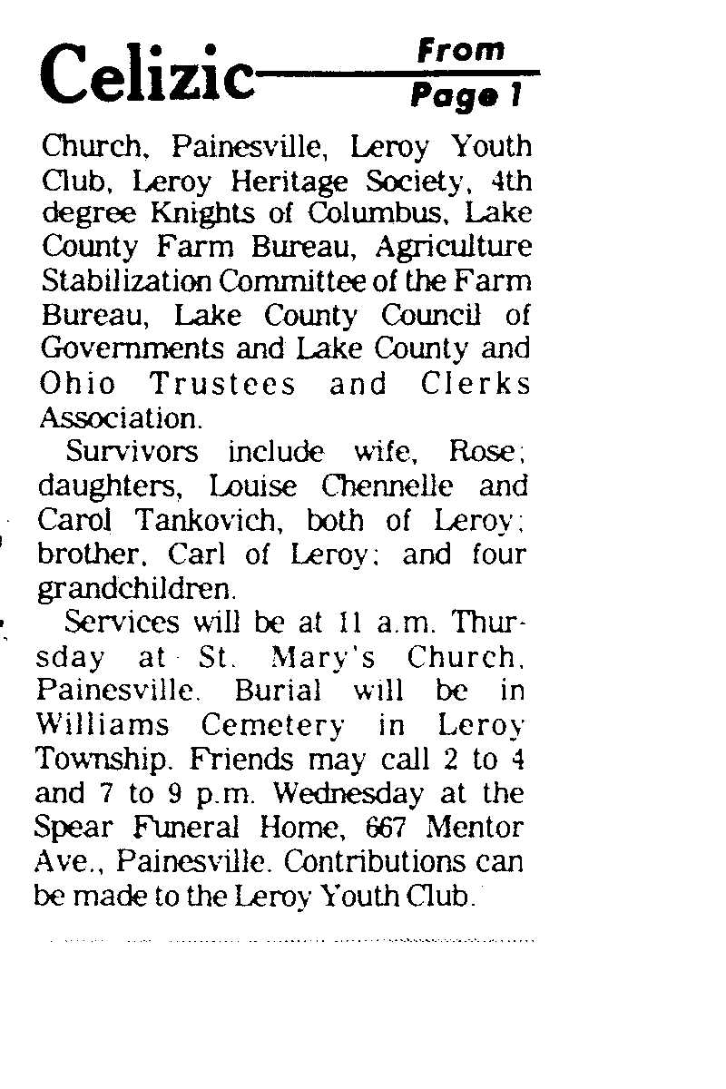 Celizic, Matt JR Obituary1, Celizic, Matt JR Obituary1 (Telegraph 02/09/1982)