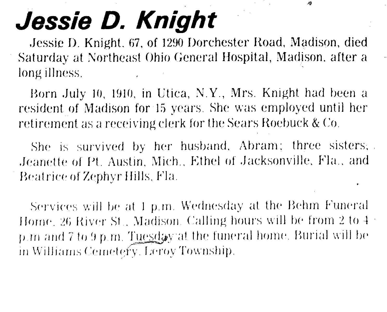 Knight, Jessie Obituary, Knight, Jessie Obituary (Telegraph 04/03/1978)