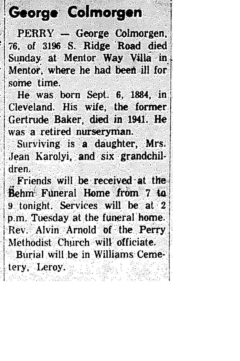 Colmorgen, George Obituary, Colmorgen, George Obituary (Telegraph 10/31/1960)