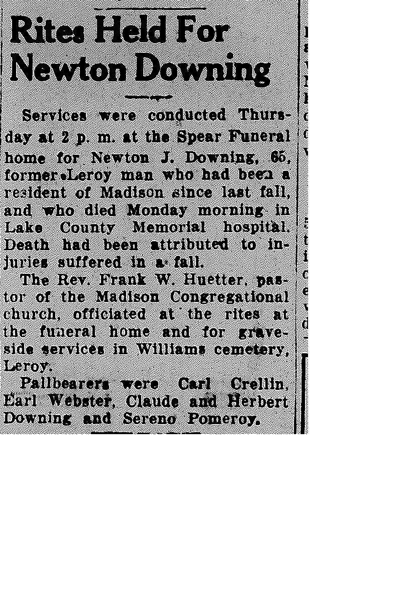 Downing, Newton Obituary, Downing, Newton Obituary (Telegraph 02/25/1944)