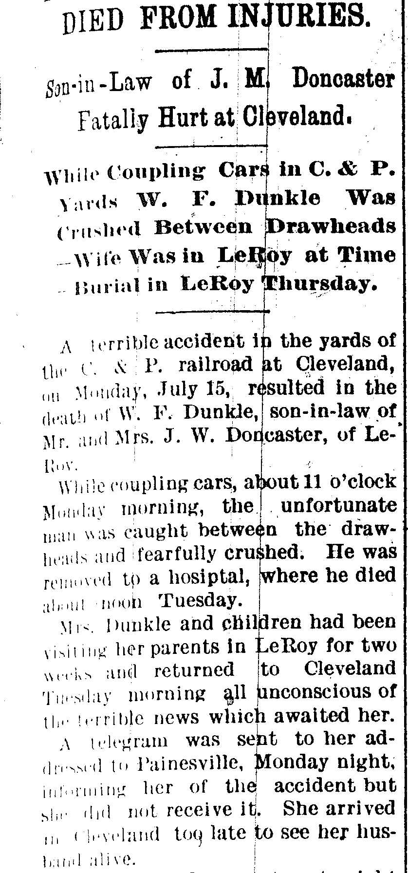Dunkle, William Obituary, Dunkle, William Obituary (Telegraph 07/24/1901)