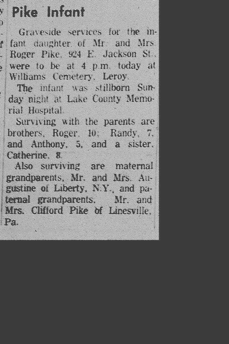 Pike, Baby Girl Obituary, Pike, Baby Girl Obituary (Telegraph 01/31/1962)