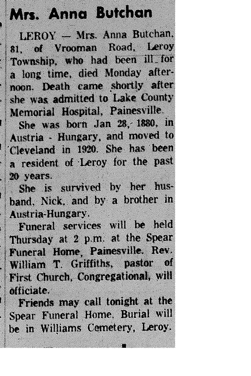 Butchan, Anna Obituary, Butchan, Anna Obituary (Telegraph 05/09/1961)
