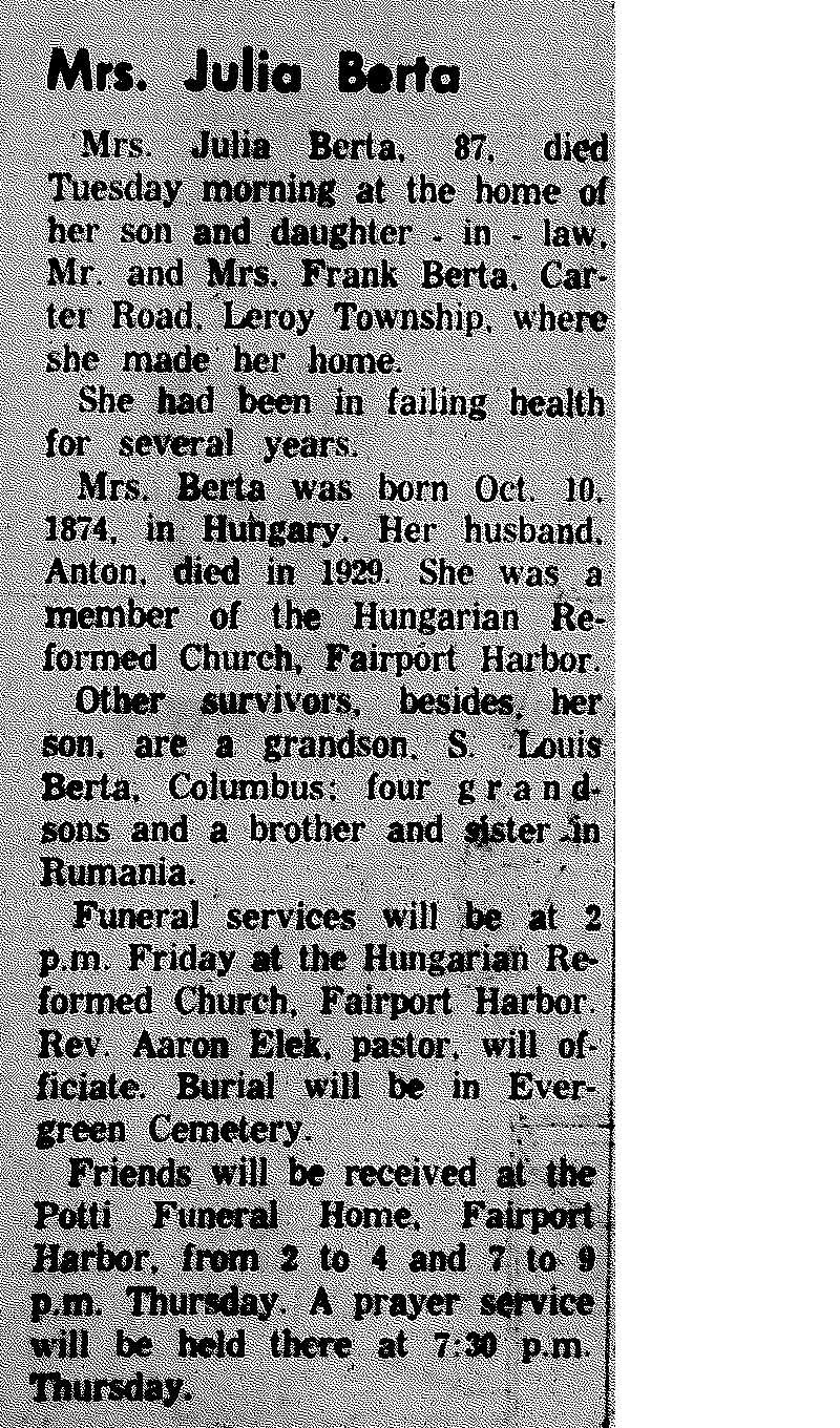 Berta, Julia Obituary, Berta, Julia Obituary (Telegraph 11/29/1961)