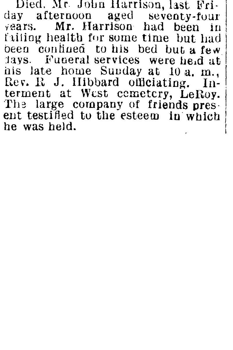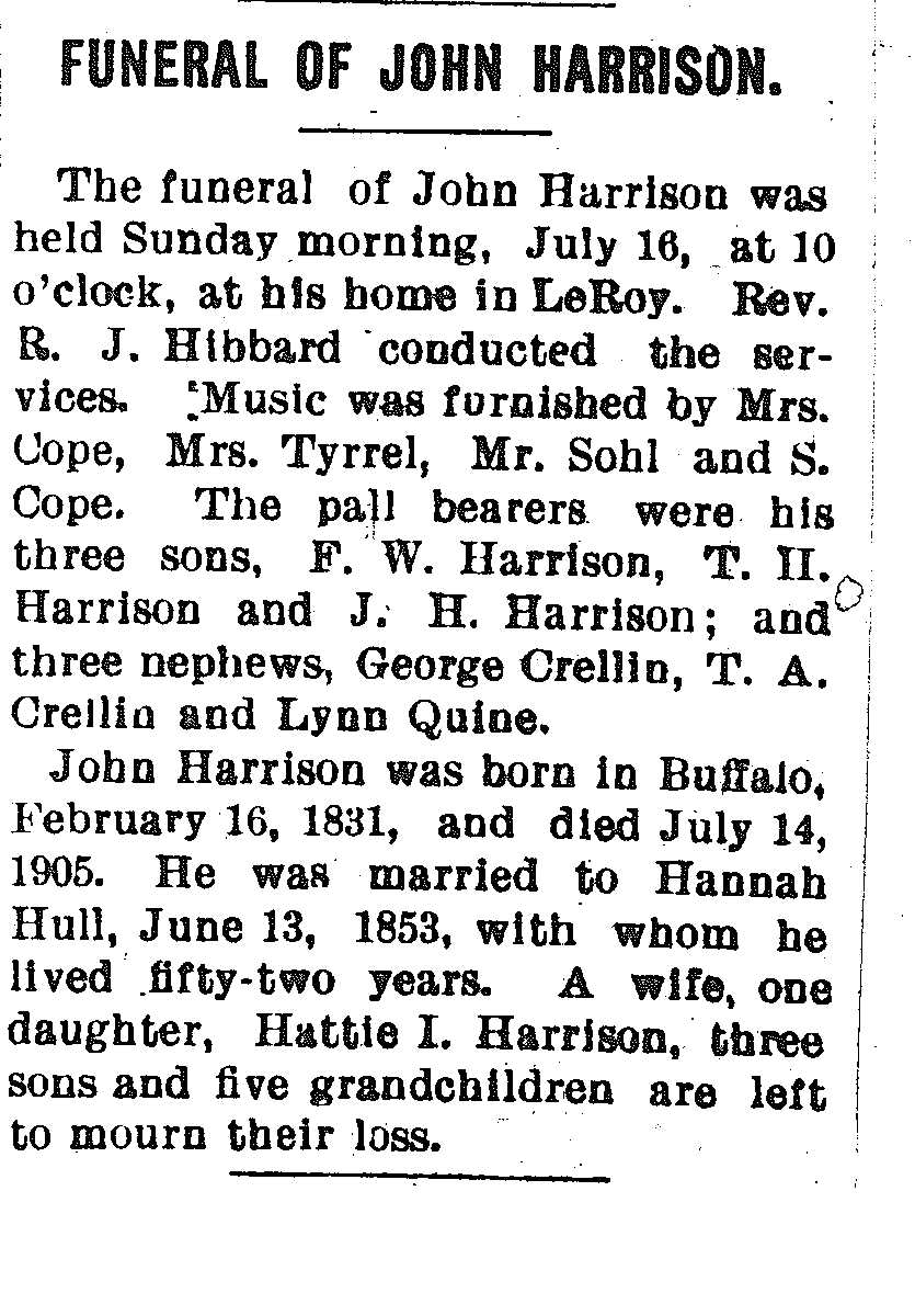 Harrison, John Obituary, Harrison, John Obituary (Telegraph 07/27/1905)