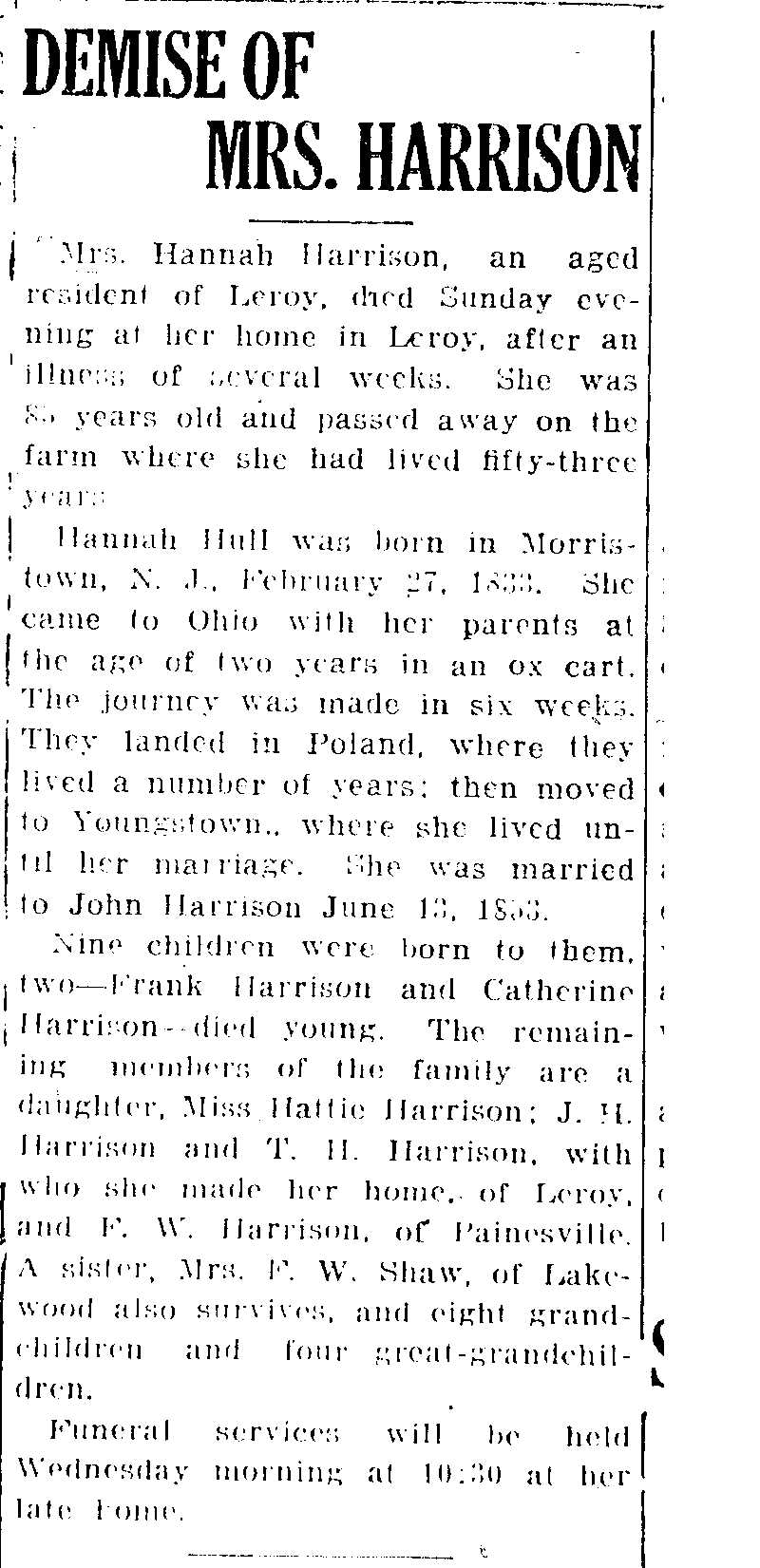 Harrison, Hannah Obituary, Harrison, Hannah Obituary (Telegraph 06/10/1918)