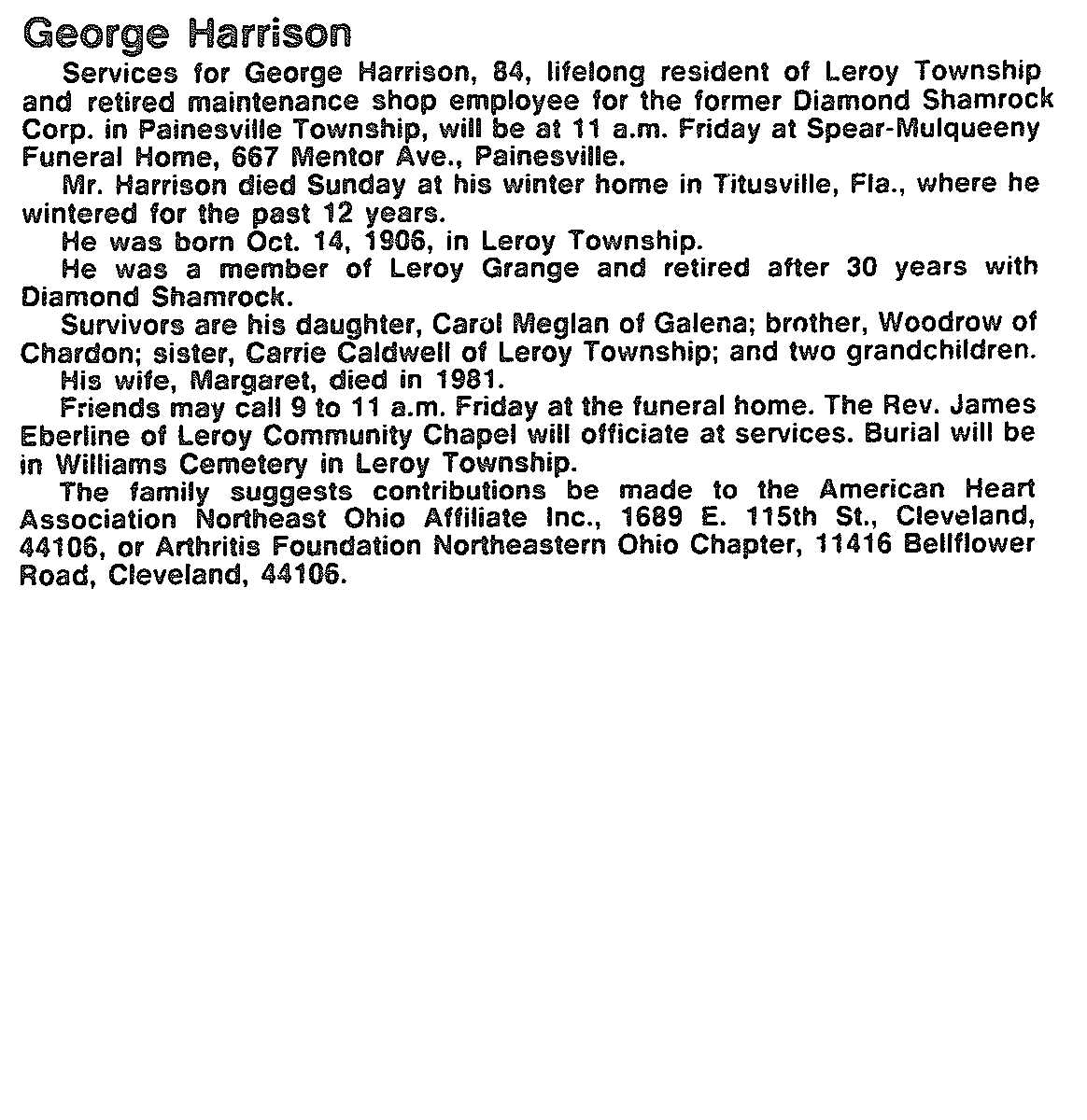 Harrison, George Obituary, Harrison, George Obituary (News-Herald 04/18/1991)