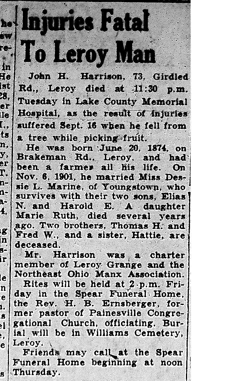 Harrison, John Obituary, Harrison, John Obituary (Telegraph 09/24/1947)