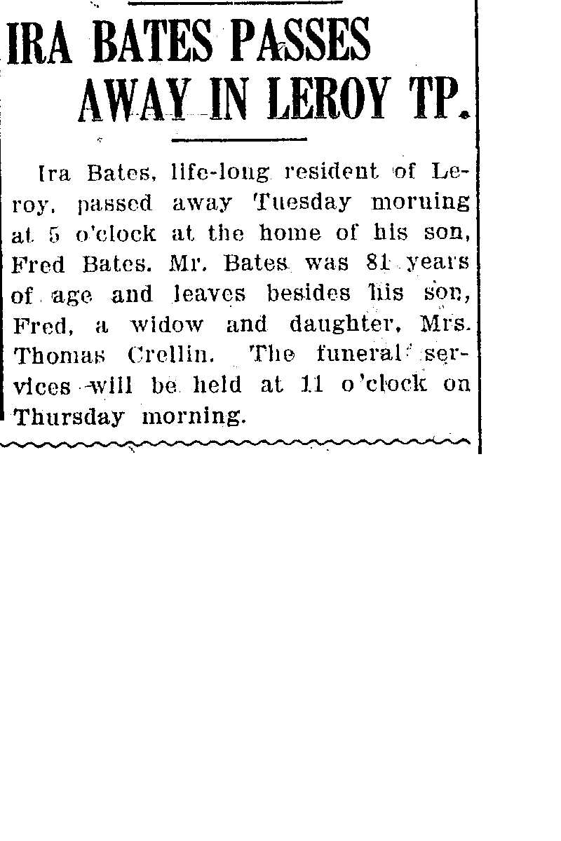 Bates, Ira Obituary1, Bates, Ira Obituary1 (Telegraph 12/)23/1911