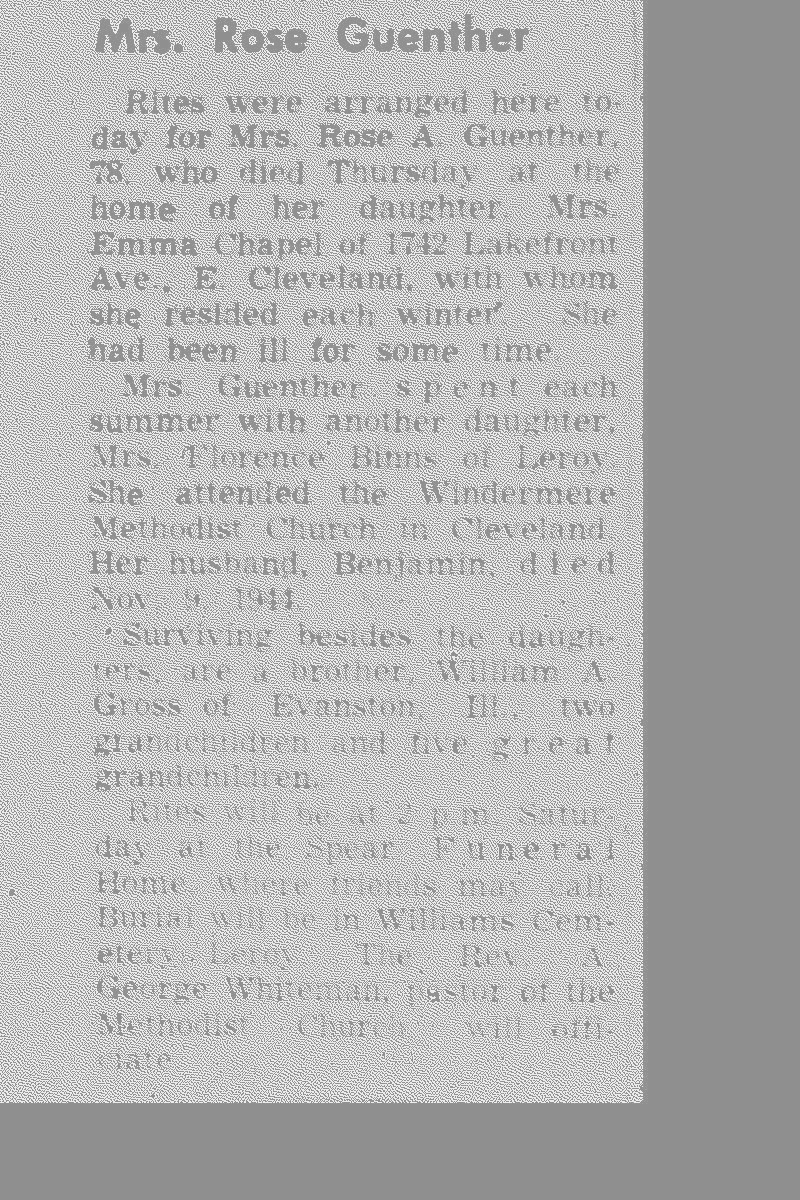 Guenther, Rosa Obituary, Guenther, Rosa Obituary (Telegraph 12/05/1952)