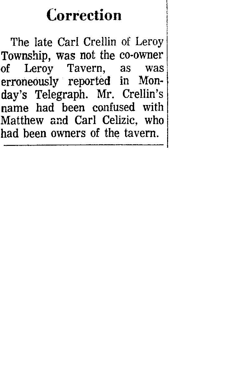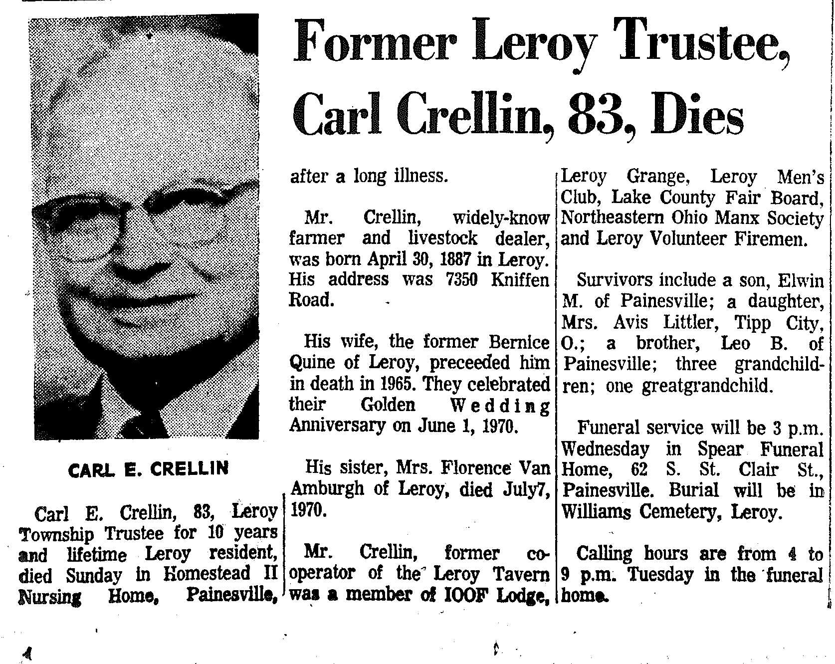 Crellin, Carl Obituary, Crellin, Carl Obituary (Telegraph 12/22/1970)