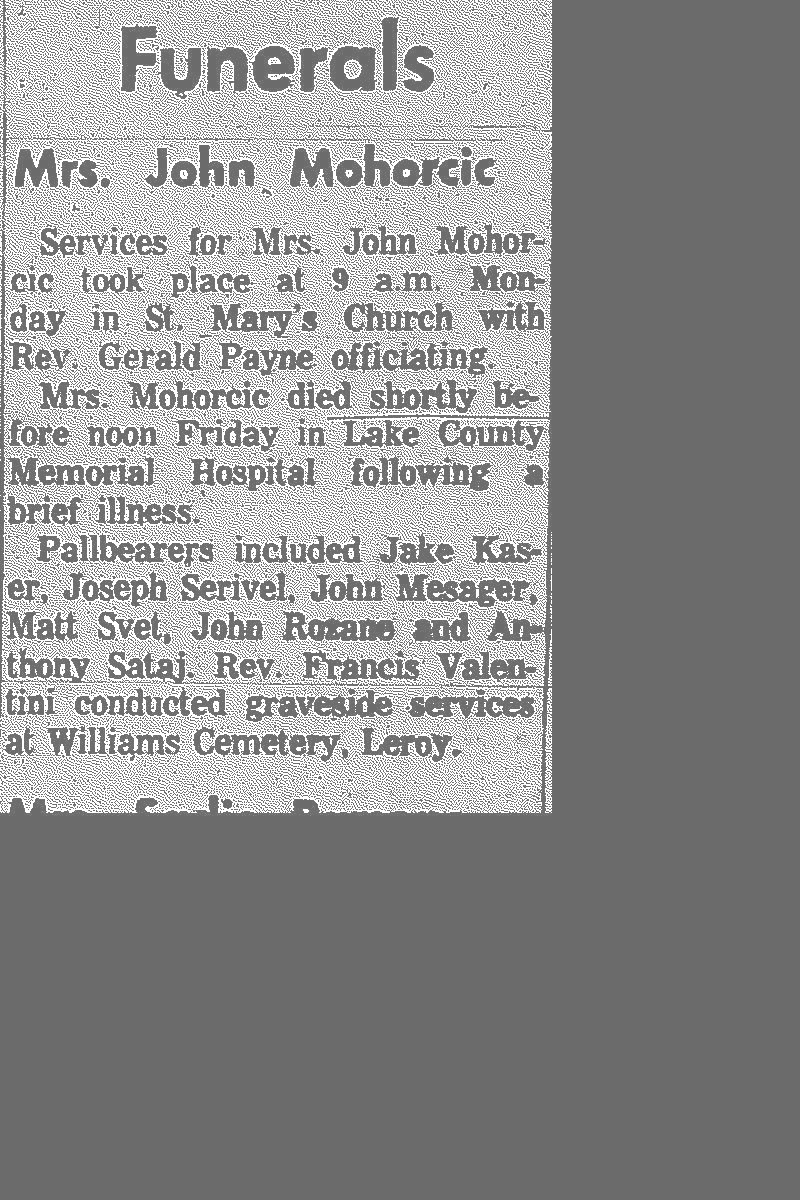 Mohorcic, Mary Obituary, Mohorcic, Mary Obituary (Telegraph 09/08/1959)
